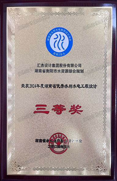 2024年,湖南省衡陽市水資源綜合規劃項目榮獲湖南省優秀水利水電工程設計三等獎