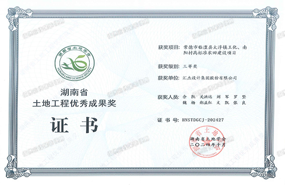 2024年,長沙市長沙縣高標準農田項目榮獲湖南省土地工程優秀成果獎